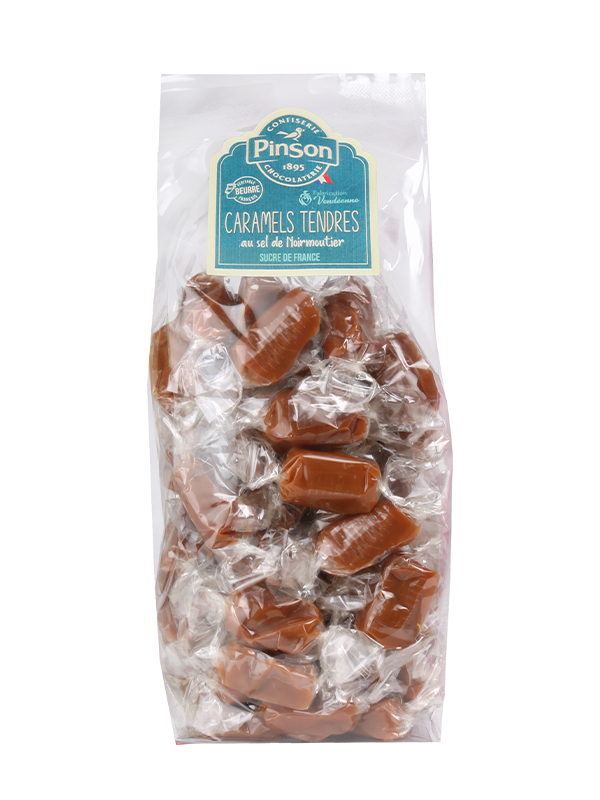 Retrouvez vos souvenirs d'enfance grâce à la tendresse des caramels tendres Pinson. Leur cuisson dans des chaudrons en cuivre ainsi que les notes délicates de beurre et de sel de Noirmoutier leur donnent ce goût si particulier.