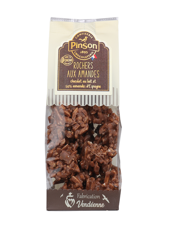 Pour les fêtes, la Chocolaterie Pinson vous propose ses fabuleux rochers aux amandes au chocolat au lait. En effet, avec leur croquant, ils sont si gourmands que vous n'en ferez qu'une bouchée !QUALITÉ ET SAVOIR-FAIRE FRANÇAIS