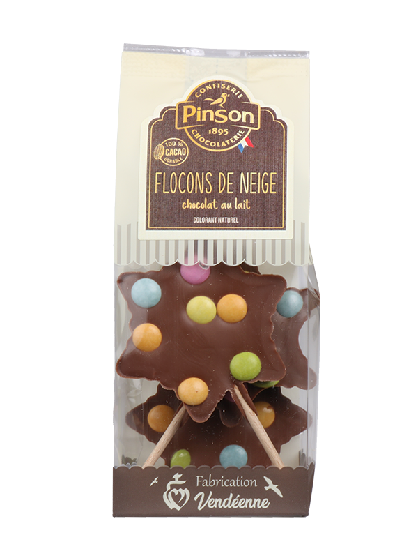 Délicatement moulés en forme de flocon de neige, nos 4 sucettes au chocolat au lait feront le plus grand bonheur de vos enfants ! Que ce soit pour décorer l'assiette des enfants ou même pour mettre au sapin.UN SAVOIR-FAIRE 100% FRANCAIS ET RESPONSABLE